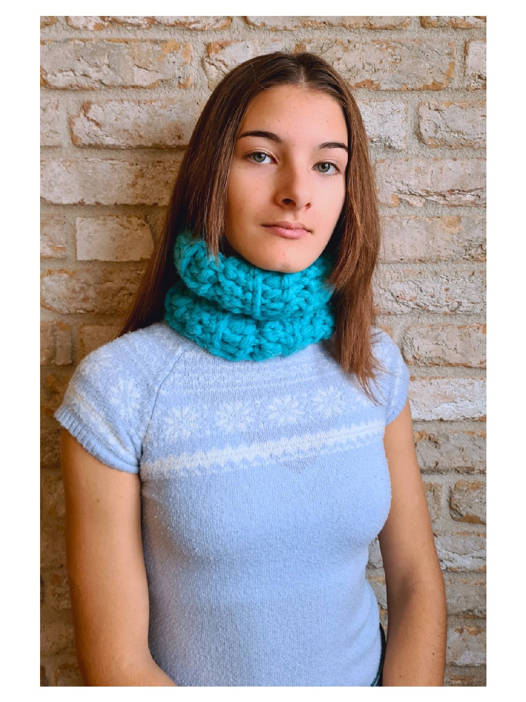 Ručne háčkovaný nákrčník tyrkysovej, modro zelenej farby.